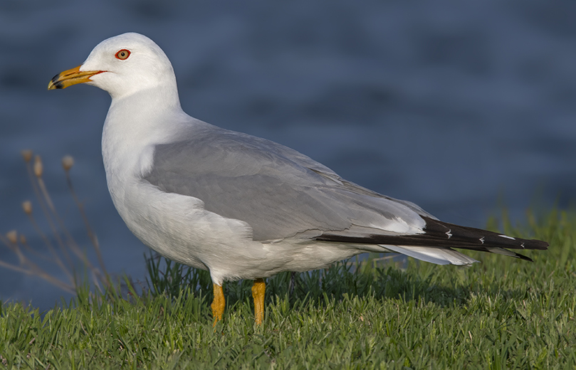 De punta de pico a punta de cola mide entre 41 y 49 cm y, como envergadura alar máxima, alcanza los 124 cm. Por lo tanto es un poco más pequeña que la gaviota de Audouin (gavina corsa) y algo más grande que la cabecinegra (gavina capnegra). Recordemos que las gaviotas carecen de dimorfismo sexual perceptible; salvo en mano (biometría) machos y hembras presentan el mismo aspecto. En la foto de cabecera te muestro un ejemplar adulto en plumaje invernal (o “de eclipse”) que retraté en A Coruña (enero del 2009); así es como la solemos ver por Europa entre mediados de octubre y finales de marzo. Pero en la foto de abajo la pillé con su librea nupcial, en el estado de Michigan (EE.UU.).