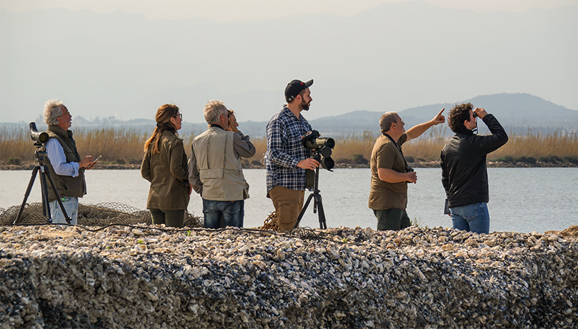 La siguiente parada fue la Torre de David Bigas cuya plataforma estaba a rebosar de gente y hubimos de esperar antes de subir. Fue aquí, concretamente en las charcas de l’Alfacada, donde más aves vimos en toda la jornada pues se había congregado un festival de limícolas. Los tres menos frecuentes fueron archibebe fino (siseta comuna), correlimos de Temminck (territ de Temminck) y archibebe patigualdo chico (gamba groga petita) que es una rareza. Pero identificamos otras 12. También la cerceta carretona (xarrasclet), la garcilla cangrejera (martinet ros) y así hasta 48 especies distintas vistas en cosa de una hora y cuarto. Pocas veces este lugar está tan exhuberante. De quedarnos un rato más seguro que habríamos llegado a las 50 especies pero había mucho más que ver en otros sitios.