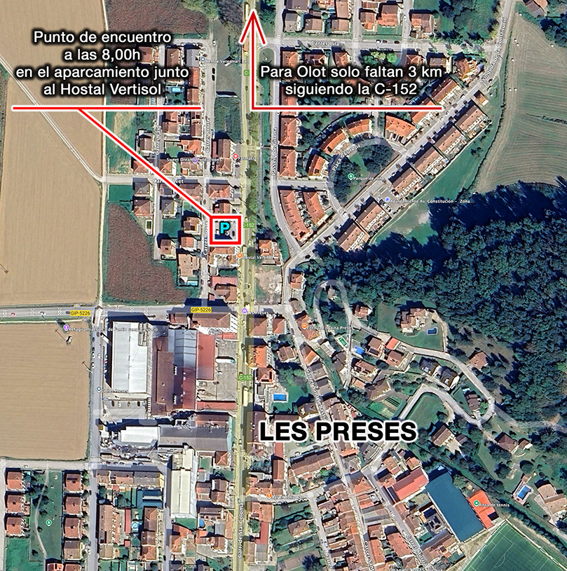 Mapa del punto de encuentro en el aparcamiento del Hostal Vertisol.